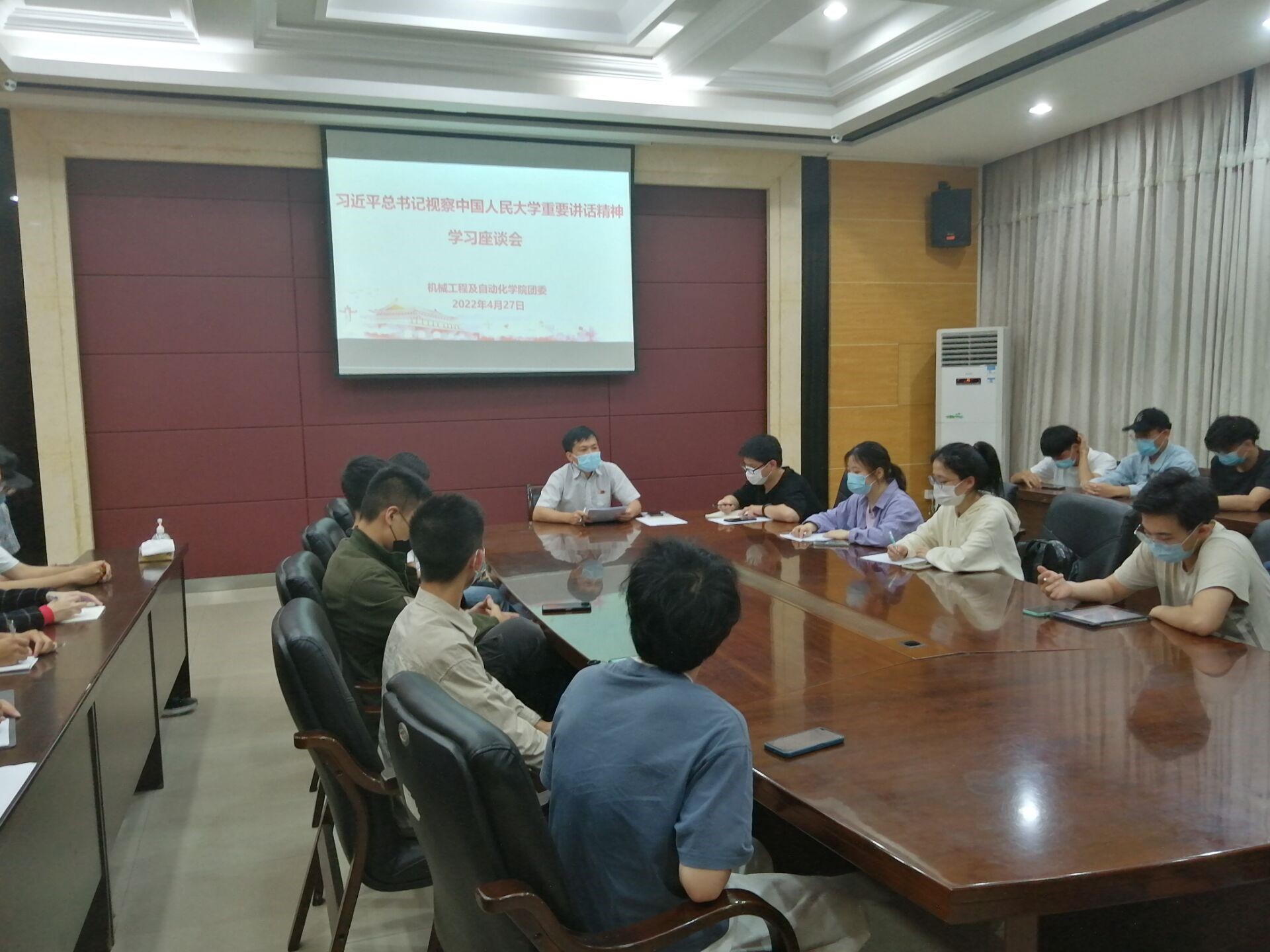 团委重视团员青年思想政治教育工作,于4月27日组织团委、学生会、研究生会和团支部书记等开展学习座谈会,通过交流研讨、观看新闻联播等形式进行学习,同学们纷纷结合自身实际,发表学习心得。