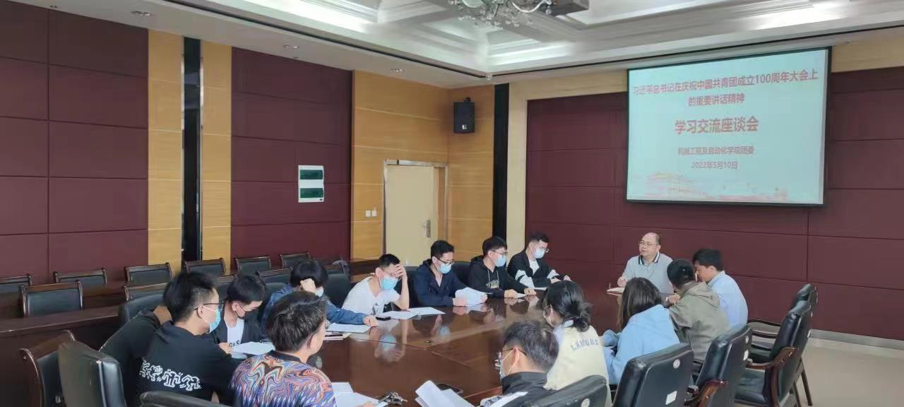 团委在机械楼南401召开学习习近平总书记在庆祝中国共产主义青年团成立100周年大会上重要讲话精神座谈会,院党委林文麟副书记、院团委林成金副书记、辅导员出席座谈会,院学生会、研究生会、2021级研究生党支部书记等学生骨干一同参加座谈。