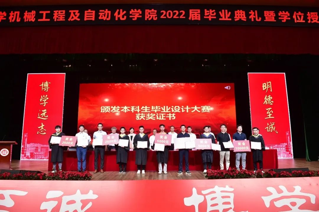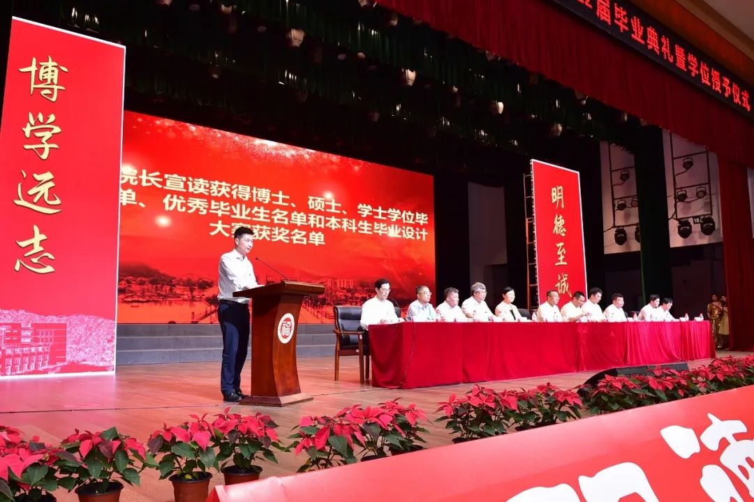 张俊副院长宣读获得博士、硕士、学士学位毕业生名单、优秀毕业生名单和本科生毕业设计大赛获奖师生名单。与会领导和校友向获奖教师和学生代表颁发荣誉证书。