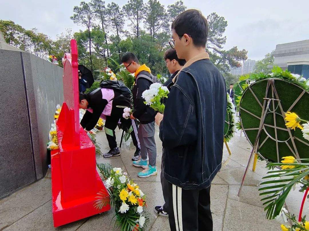 于4月5日上午举行以“缅怀革命先烈,弘扬爱国精神”为主题的清明节祭扫烈士陵园活动,带领“青马工程”班、青年志愿者等团学骨干前往文林山烈士陵园进行祭扫并敬献鲜花。