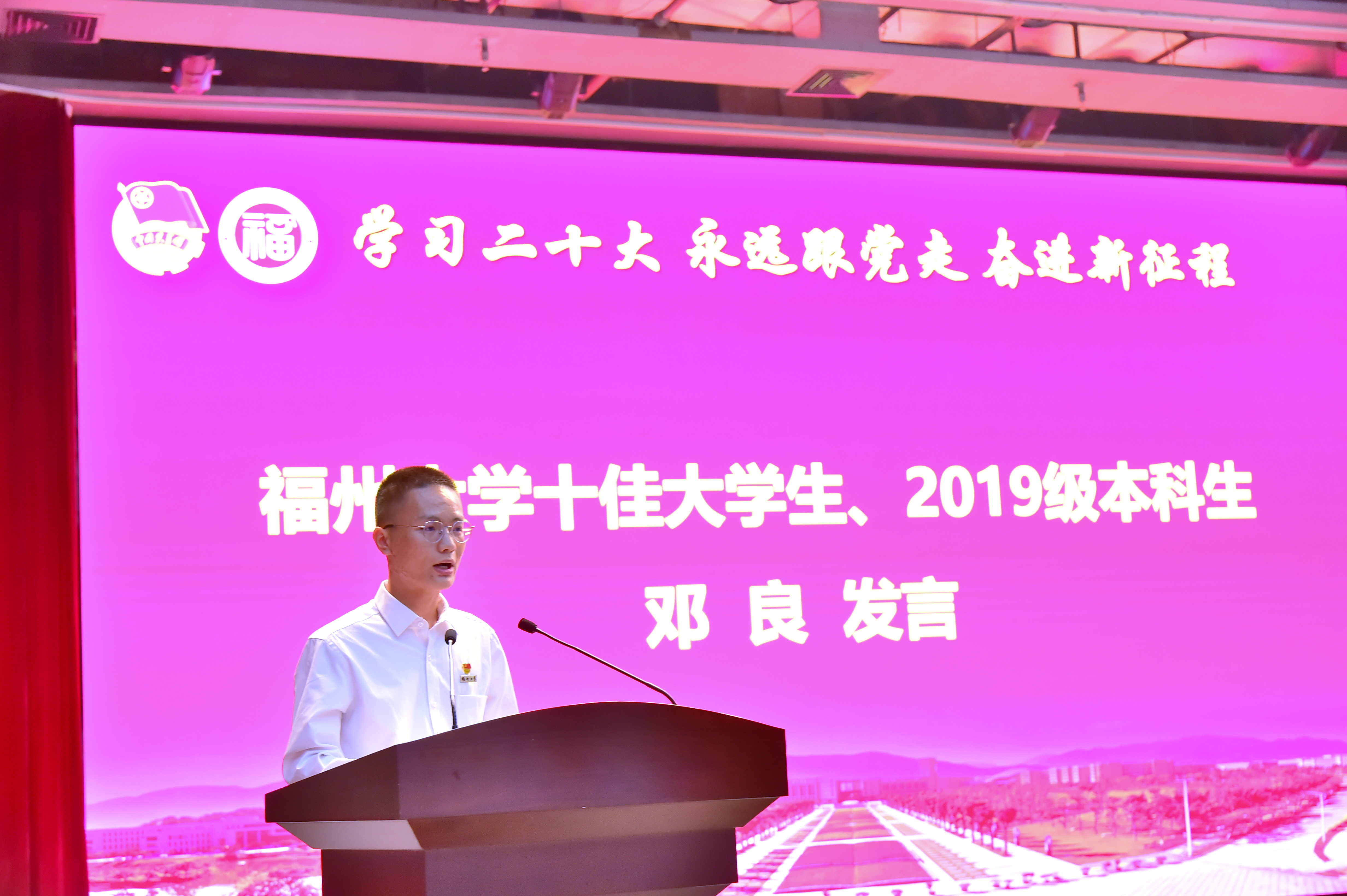 十佳大学生称号、本科生国家奖学金获得者、保送西北工业大学的2019级机制专业的邓良同学结合自己追逐梦想的经历,鼓励大家不要忘记梦想并不断为之努力奋斗。他提到,青年就要时刻保持初生牛犊不怕虎、越是艰险越向前的精神,不惧失败,保持热爱,勇立时代潮头、争做时代先锋。