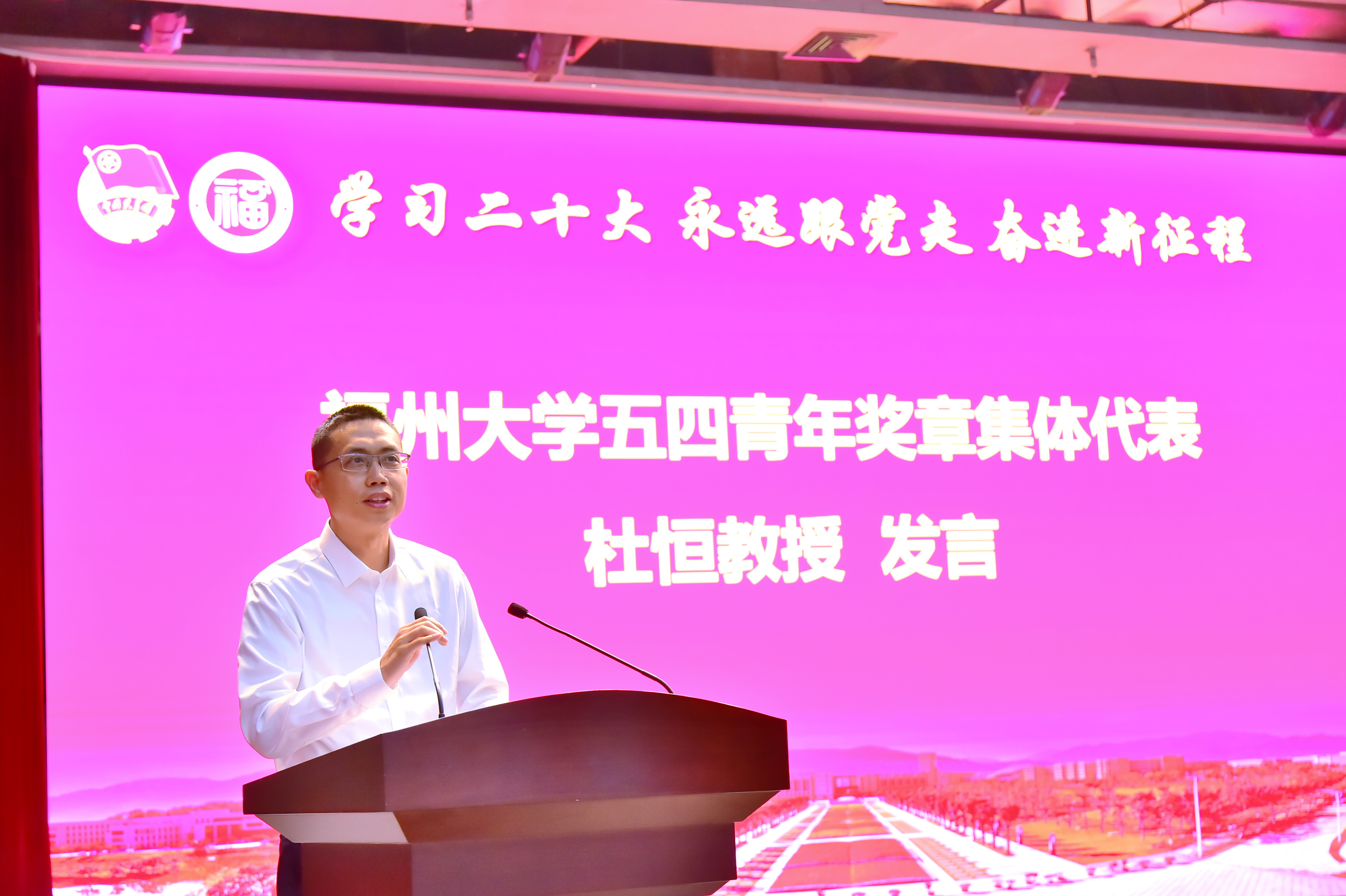 五四青年奖章集体代表、博士生导师杜恒教授分享了自己所在团队在“五四精神”的激励下,发扬“一代接着一代干,数十年如一日,将一张蓝图绘到底”的精神,勇攀科技高峰的先进事迹。他用习近平总书记在2023年新年贺词中提到的“明天的中国,奋斗创造奇迹”,激励全院青年师生要有愚公移山的志气和滴水穿石的毅力,脚踏实地、埋头苦干,用奋斗创造更美好的明天。