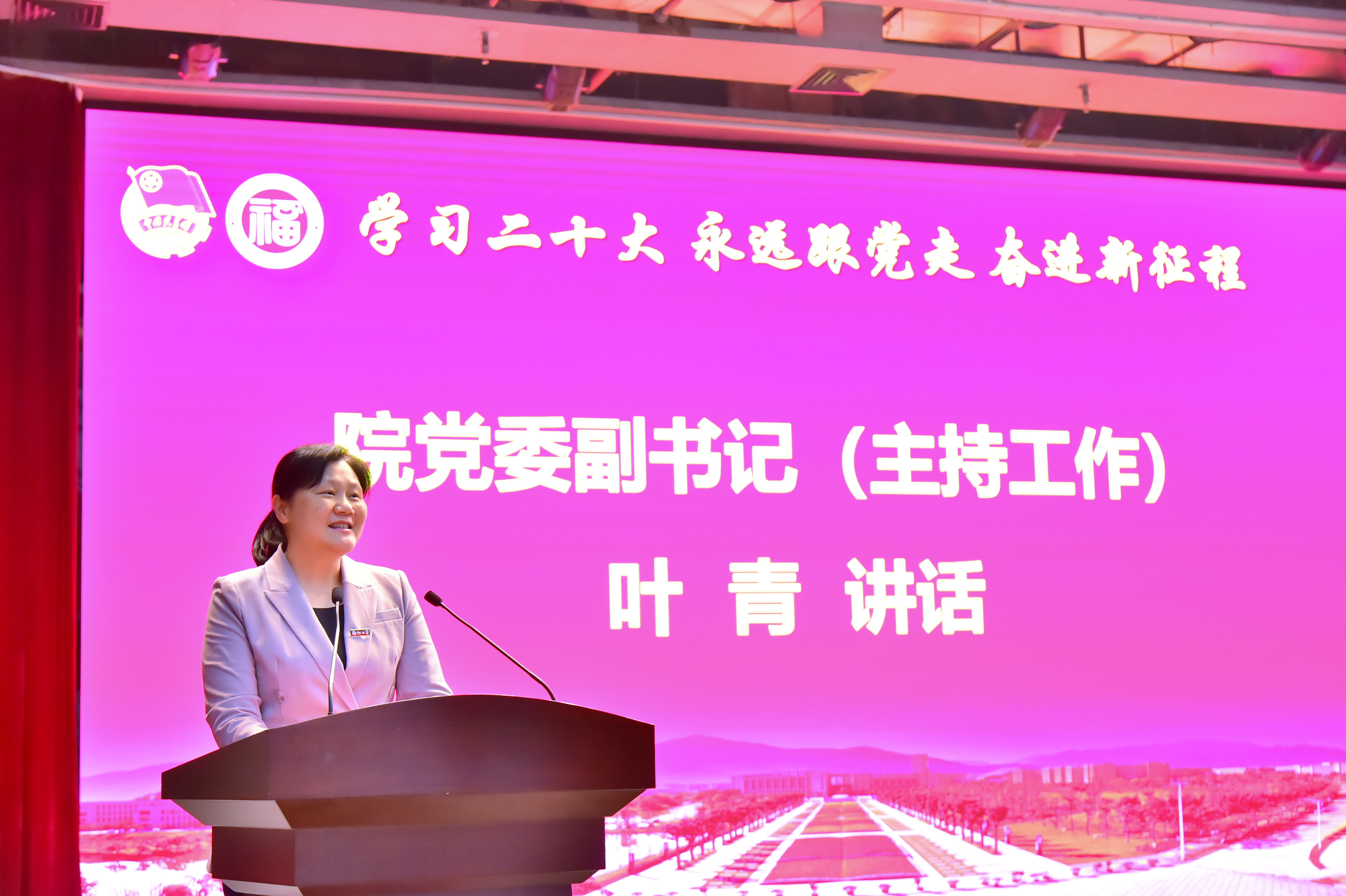 的各项事业发展及学校“双一流”建设贡献了青春智慧和力量。她强调,广大青年要坚定不移听党话、跟党走,怀抱梦想、脚踏实地,敢想敢为又善作善成,立志做有理想、敢担当、能吃苦、肯奋斗的新时代好青年。她提出三点希望与全院青年师生共勉:一是在坚定理想信念上下功夫,厚植爱国情怀,加强品德修养;二是在增长知识见识上下功夫,培养奋斗精神,坚持知行合一;三是在增强综合素质上下功夫,勇于担当使命,勇立时代潮头。