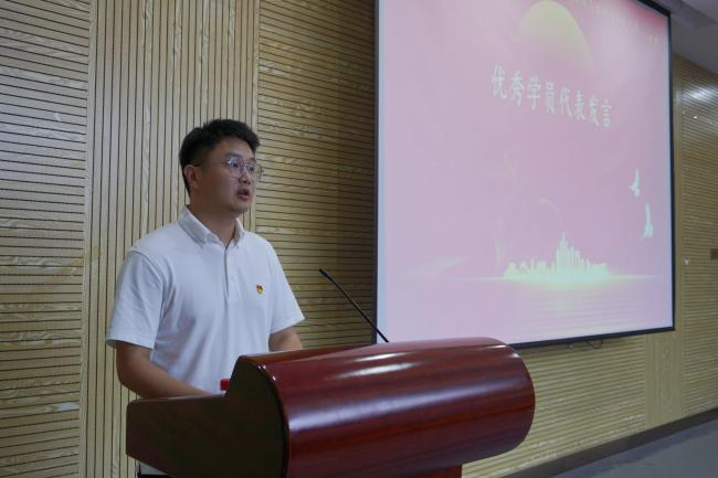 2019级本科生机制二班党支部书记邓良发言。邓良同学向分党校授课的领导、老师表达了由衷的感谢,深情回顾了自己从一名党务“小白”逐渐成长为一名有党建实务经验的支部书记的历程和感悟。