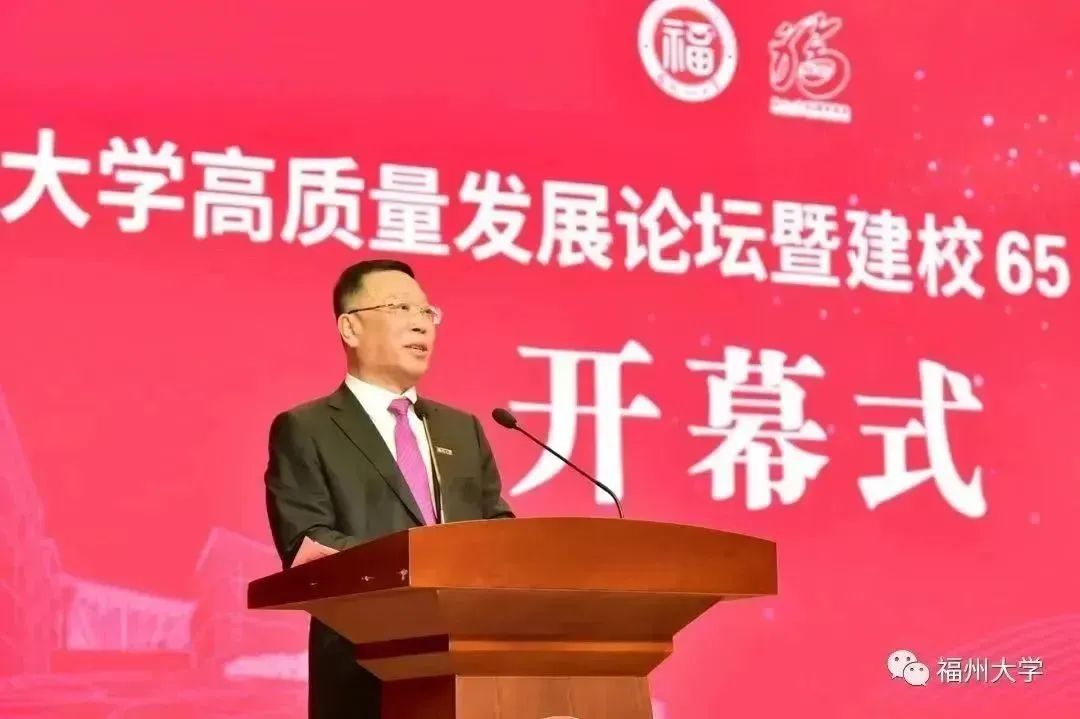 高质量发展论坛暨建校65周年系列活动开幕式在旗山校区宏晖文体综合馆隆重举行。校党委书记陈国龙主持开幕式,校长付贤智院士致主题为《传承福大薪火 逐梦世界一流》的开幕词,各兄弟高校代表、校友代表以及师生代表分别致辞,回顾大象传媒