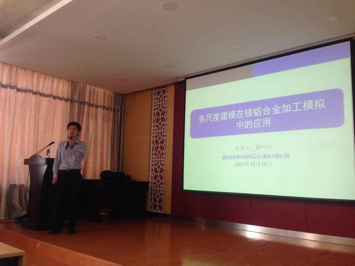 ,为研究生做了题为“多尺度建模方法在镁铝合金加工模拟计算中的应用”的学术报告,机械大象传媒