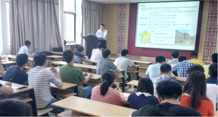 首先由主持人对四位学者进行简单的介绍,然后四位学者依次进行报告。齐鹏教授的报告主题是他的研究成果:机器人辅助心脏导管术触觉感知与系统集成,其创新性的将平面弹簧结构应用到连续体机器人的骨架设计中,在此期间需要运用旋量理论建立连续体柔性臂的刚度模型,并创新性的将基于模糊模型的控制理论应用到连续体柔性臂末端点的位置追踪问题上,实现了精确控制。随后,齐鹏教授又从工程角度介绍了技术发展现状。汪馗教授则介绍了聚合物基复合材料的热力学性能及其形变和失效机理的研究,向大家讲解了它们的化学、物理和形貌学表征,以及极端条件下的力学性能表征,并使用先进的技术分析材料形变及其失效机理。徐淑波教授介绍了关节机减速器关键技术的研究,通过PPT展示了减速器制作的工艺流程和斜齿壳类零件的工艺流程图,以及开发高精度、高刚性、大扭矩工件回转主轴系统需要满足的加工精度的要求。徐凡博士的报告主题则是:绿色制造-双层金属板料塑性成形连接机理及断裂机制,其主要从以下几个方面做了介绍:成型机理四个区域的划分;本构模型的研究——建立修正GTN-Hi111948的损伤模型,损伤的演化机理——正常失效,以及正常失效的断口特征和预防失效的措施;接头质量的评价标准。报告结束以后由在场的研究生、老师对自己感兴趣的或不理解的部分进行提问,各位青年学者回以细致的解答。最后,大家对各位的精彩汇报再次报以热烈的掌声,本次青年学者论坛圆满结束。