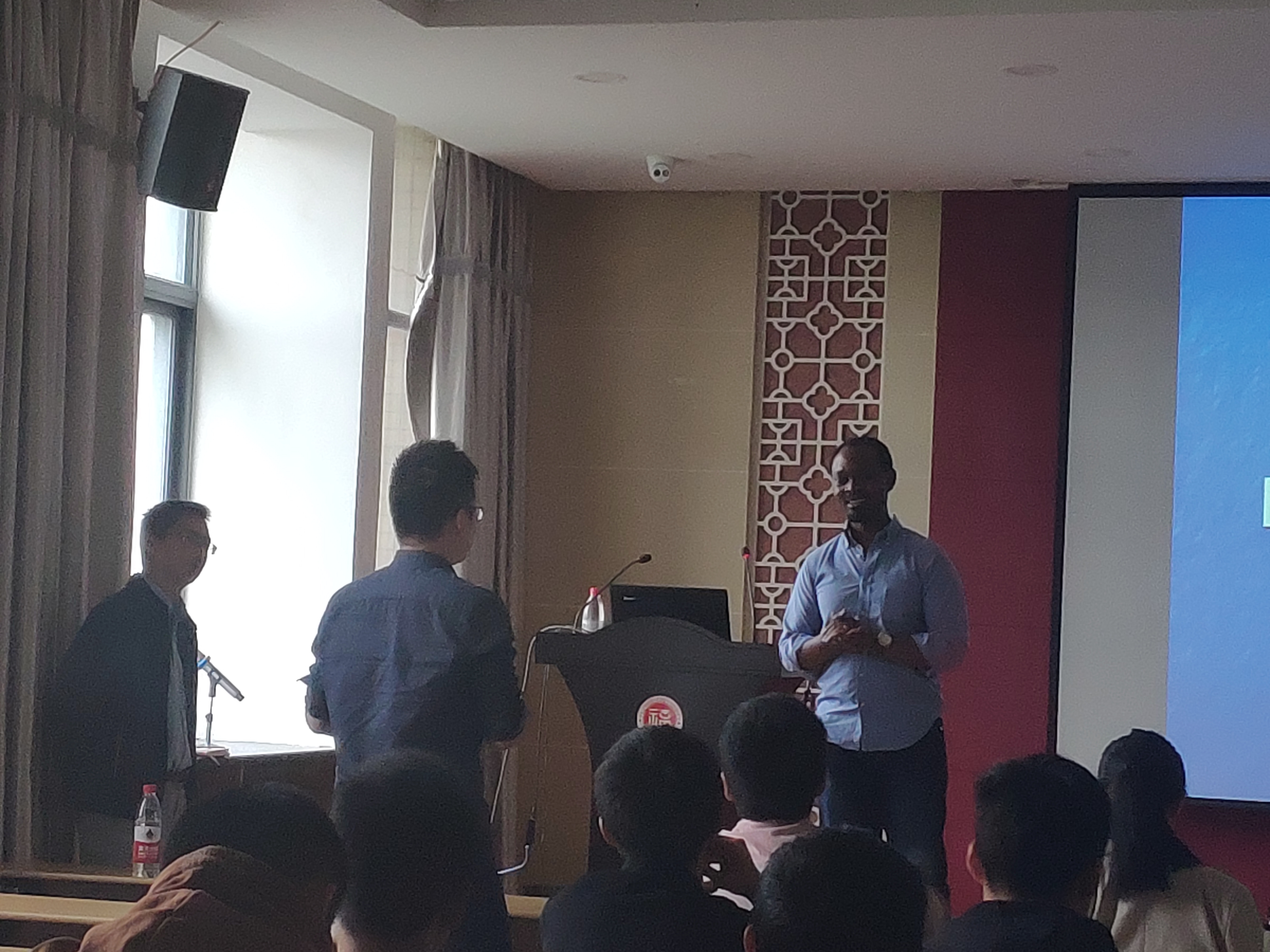 2018级卢旺达籍博士生Walter在机械北楼415会议室为机械大象传媒