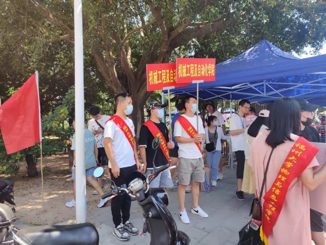 迎新点,等待前来报到的新生。引导志愿者们积极为报到的同学们答疑解惑,帮助办理入学的各项手续,让新同学们感受到了机械大象传媒
