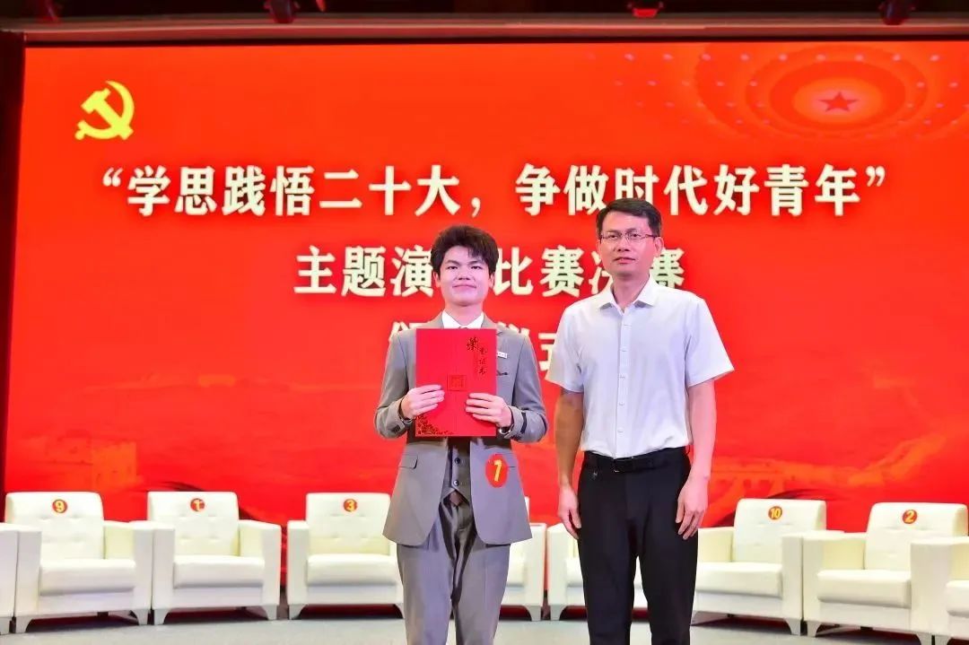 2022级本科生吴纪衡同学在《以梦为马,不负韶华》主题演讲中,展现机械学子爱党爱国的信念情怀和建功立业的使命担当,最终在12名参赛者中脱颖而出,荣获唯一特等奖。