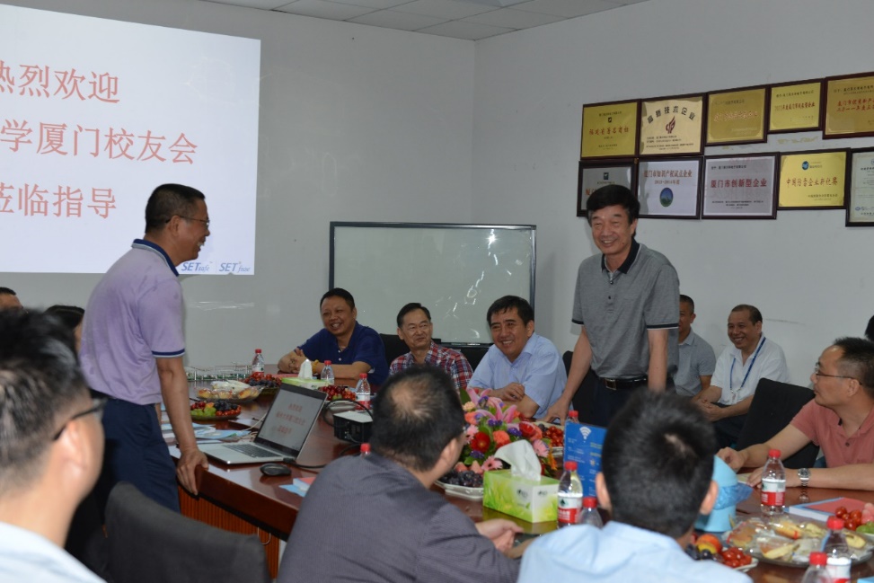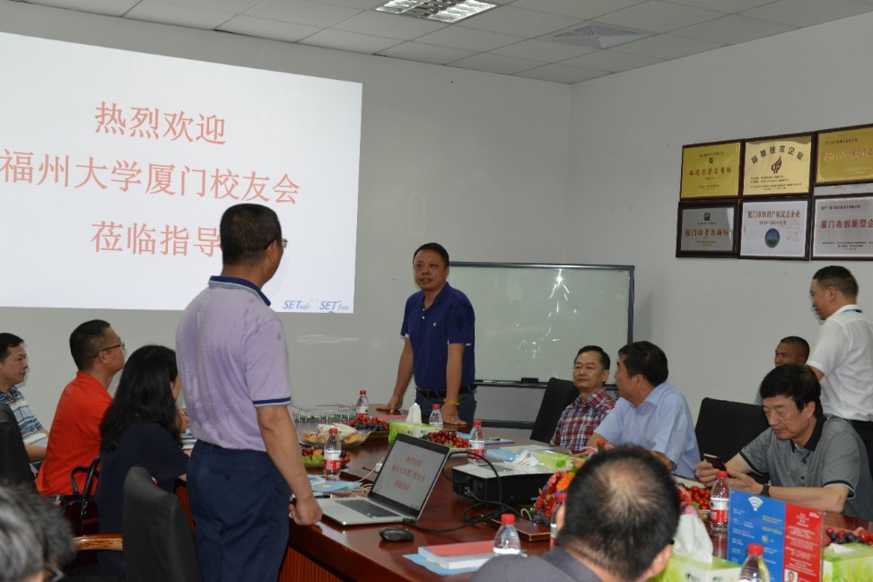 厦门校友会秘书长,他表示很敬重做实业的校友,校友会是个很好的平台,建议公司可以和对口专业做很好的结合,催化人才引进;同时今年10月27日是母校60周年校庆,届时全球校友将资源汇聚,希望福大校友会以本次聚会为契机,搭建校友与学校、校友与校友交流合作的平台,畅叙旧谊,互诉别情,共谋发展。