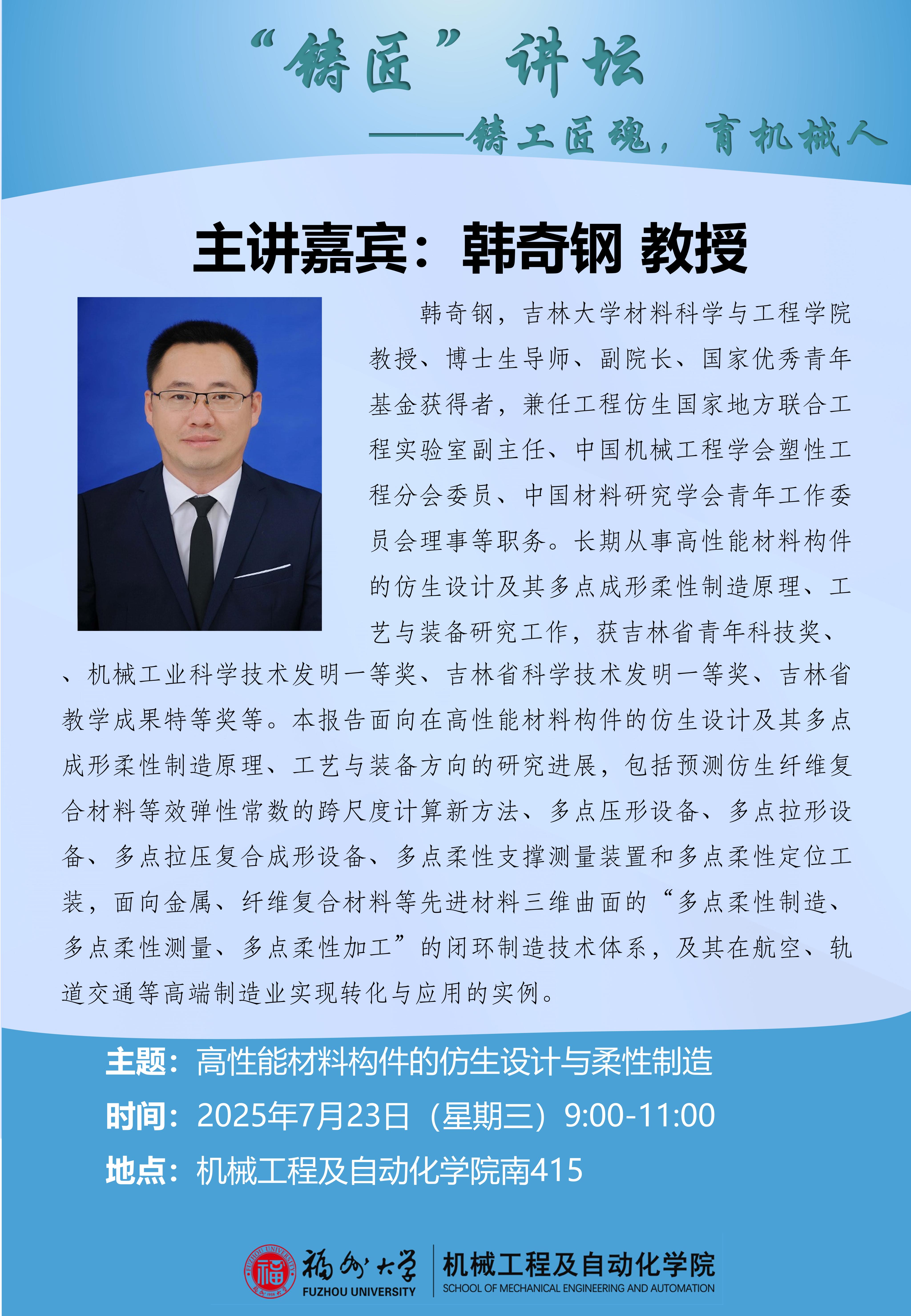 铸匠”讲坛 --高性能材料构件的仿生设计与柔性制造