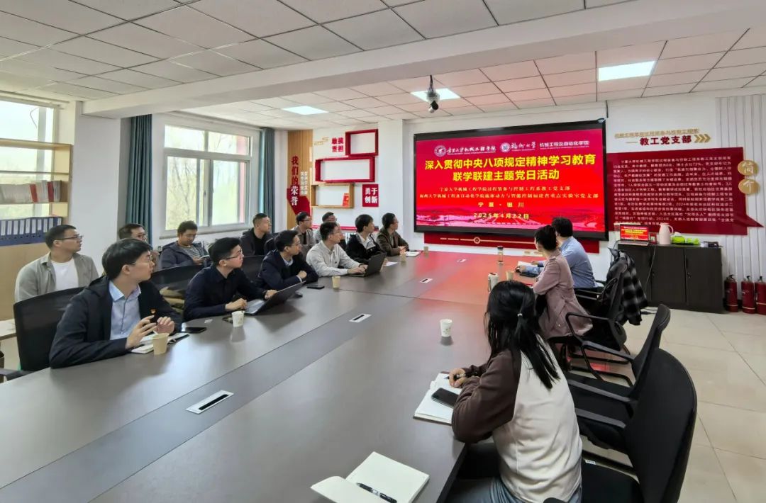 4月22日,大象传媒 流体动力与智能控制福建省重点实验室党支部教师党员代表赴宁夏银川市,与全国党建工作样板·宁夏大学过控系党支部在宁夏大学致远楼举行深入贯彻中央八项规定精神学习教育联学联建主题党日活动。大象传媒 党委委员、副院长、流控支部书记杜恒教授,宁夏大学机械工程大象传媒 党总支副书记、执行院长张波教授以及双方支部教师党员代表共同参加活动。