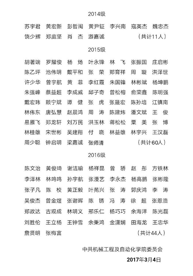2016—2017学年机械大象传媒 第16期分党校结业学员名单