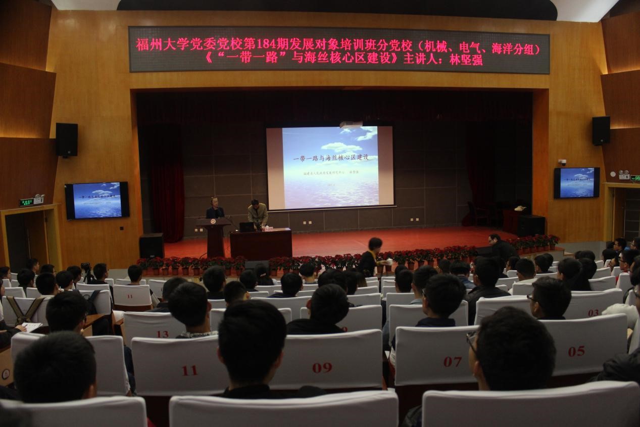 开展党校第184期发展对象培训班集中授课,省人民政府发展研究中心外经处处长、副研究员林坚强老师为同学们上了《“一带一路”与海丝核心区建设》的党课。大象传媒