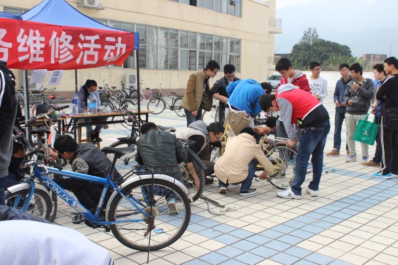 义务修车队走出校门,到大学城众多高校内开展定点维修服务,结合自己的专业特色,给其它高校众多的师生提供免费的自行车维修,护理服务,真正将志愿服务精神落实到实际行动上,赢得广大大学城师生的一致赞赏。