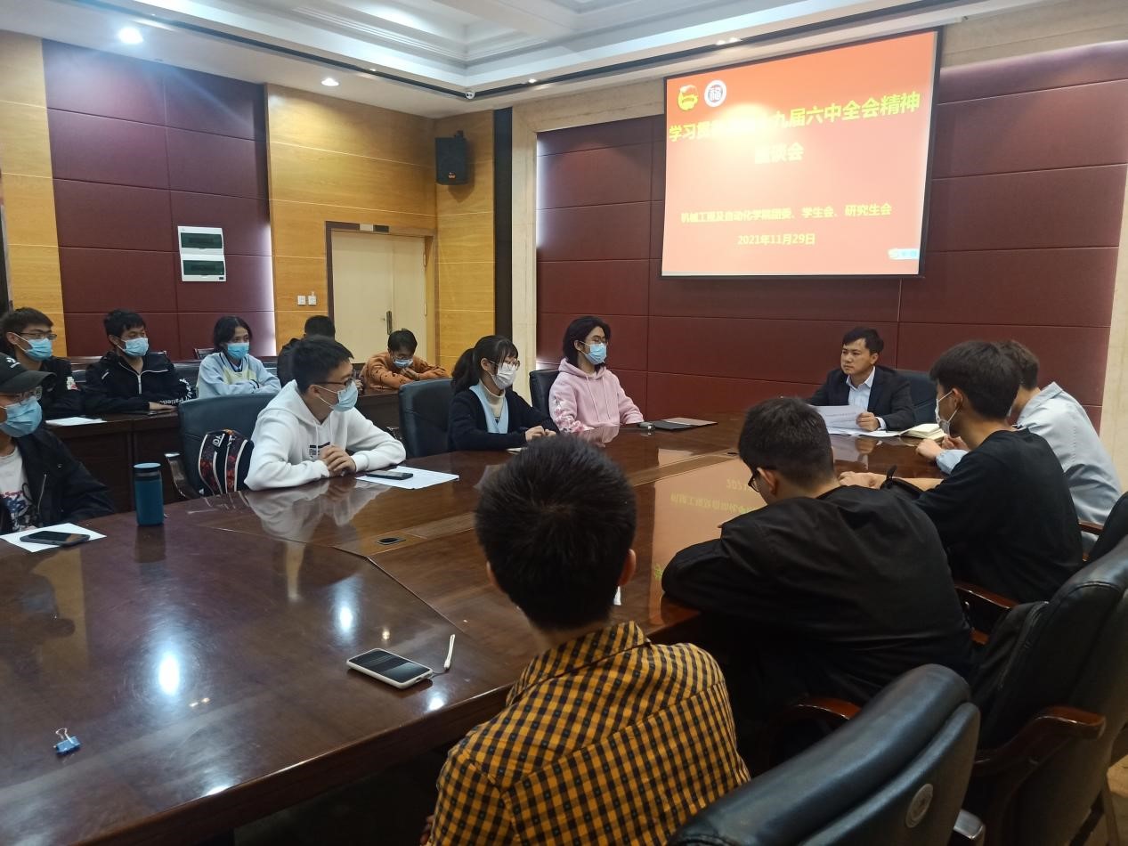 团委、学生会、研究生会在机械南楼401会议室召开学习贯彻十九届六中全会精神座谈会及团委、学生会、研究生会工作例会。会议由大象传媒