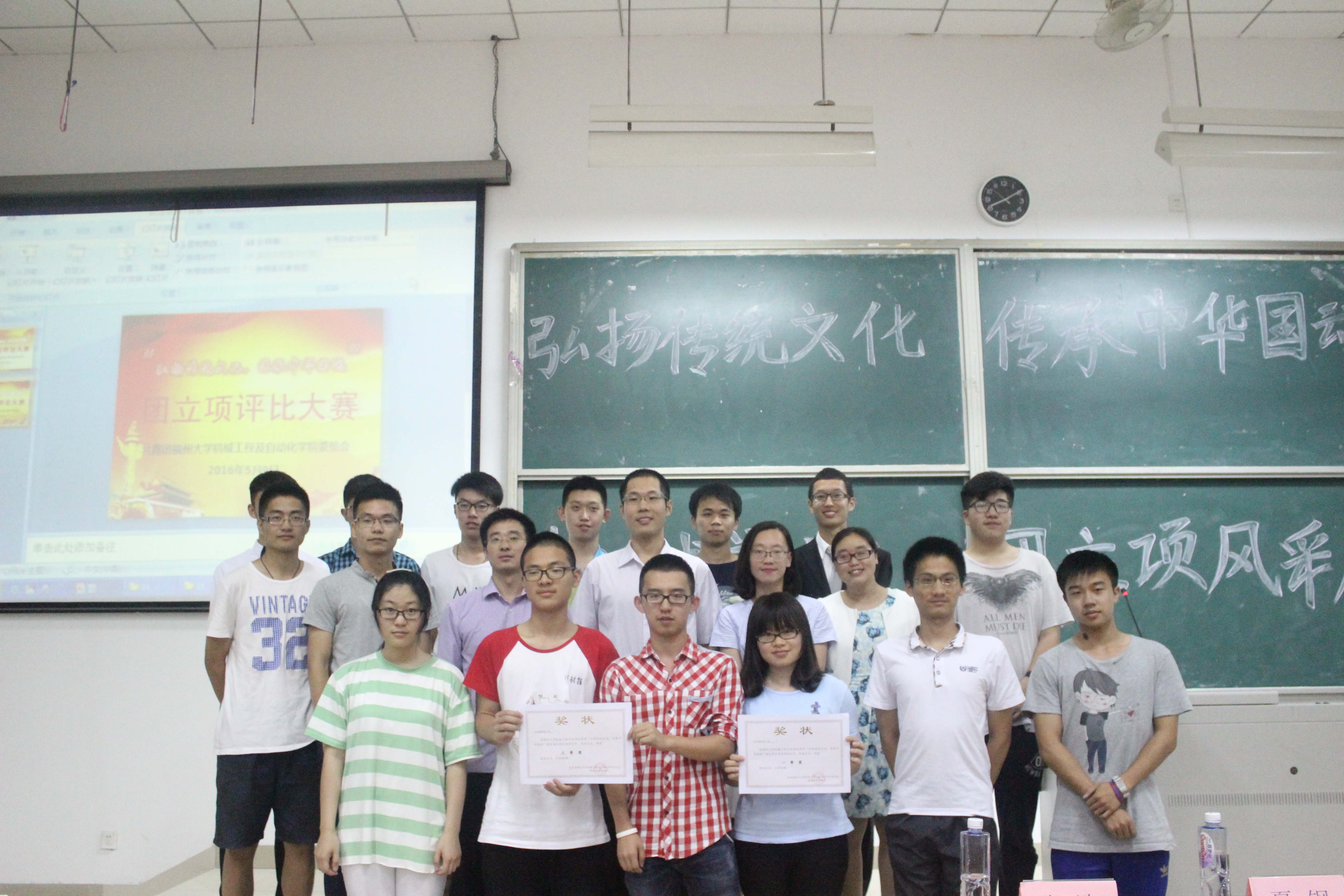 活动伊始,经过初选进入最后决赛的8个班级团支部依次上台展示。各团支部以富有感情的宣讲,丰富多彩的表演,再加上支部成员齐心协力的配合,演绎了一个个精彩的“弘扬传统文化,传承中华国魂”的故事。展示结束后,校团委组织部部长陈山老师对各班级团支部的表现做了点评及总结。最后,评委老师们为获奖班级团支部颁奖。其中14级机制3班荣获一等奖,14级机制1班及15级机制1班荣获二等奖,15级机制4班、15级机制2班、15级机制3班、15级材控1班和15级车辆1班荣获三等奖。