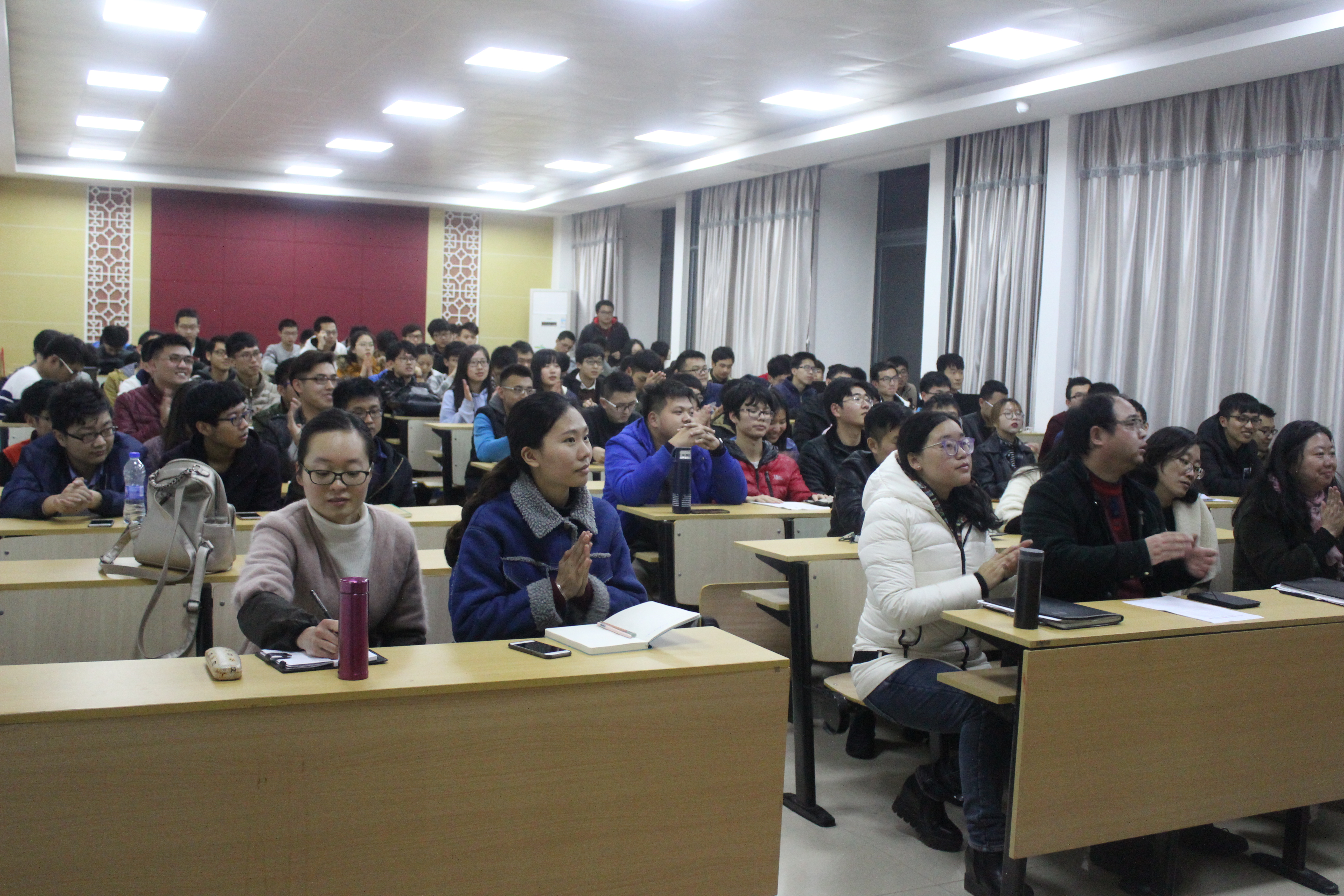 最后,陈伯豪老师,滕培秀老师以及刘旭莹老师依次上台发言,对各班的汇报做出相应的点评,并提出自己的意见。本次汇报会在主持人的一番结束语中圆满告终。