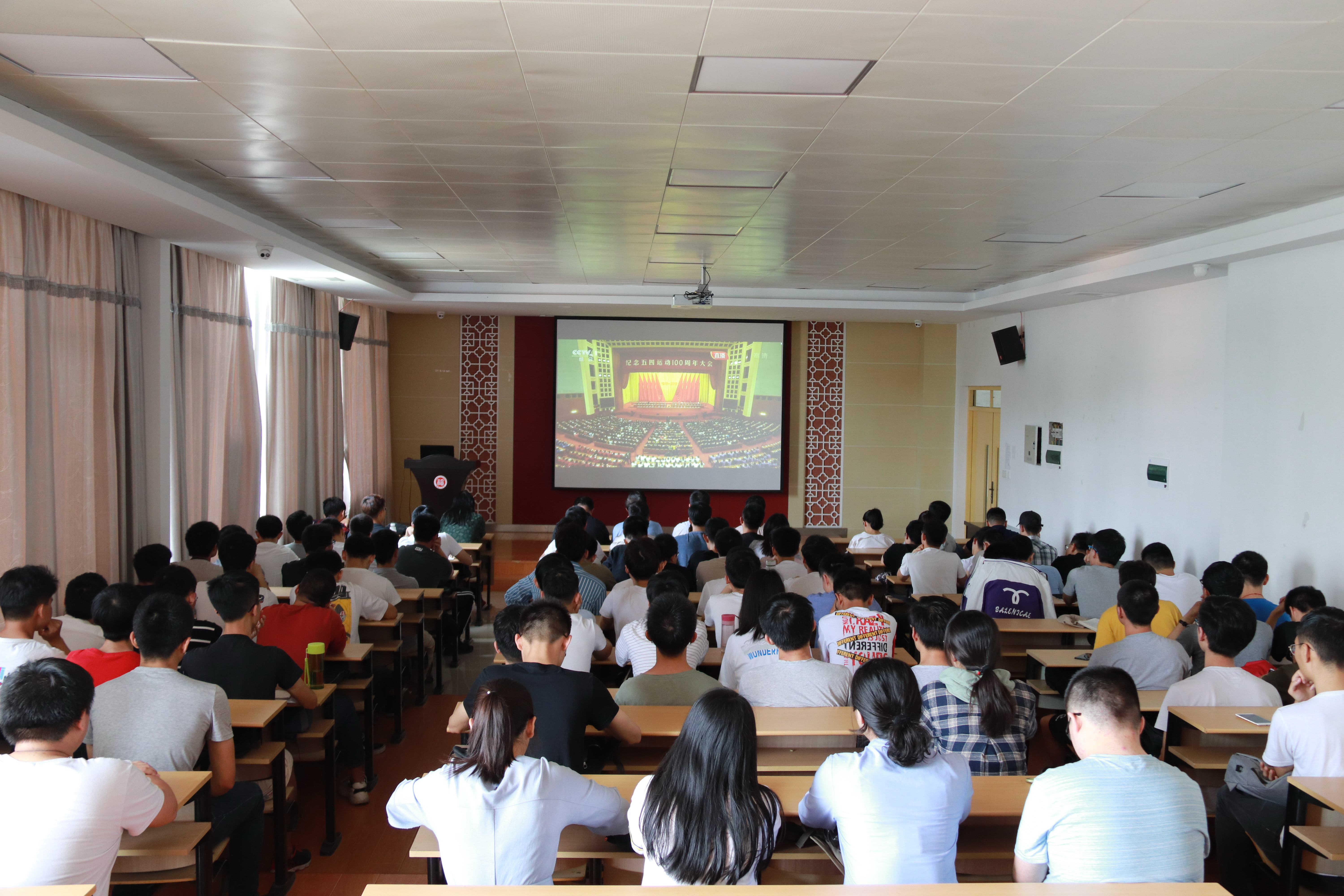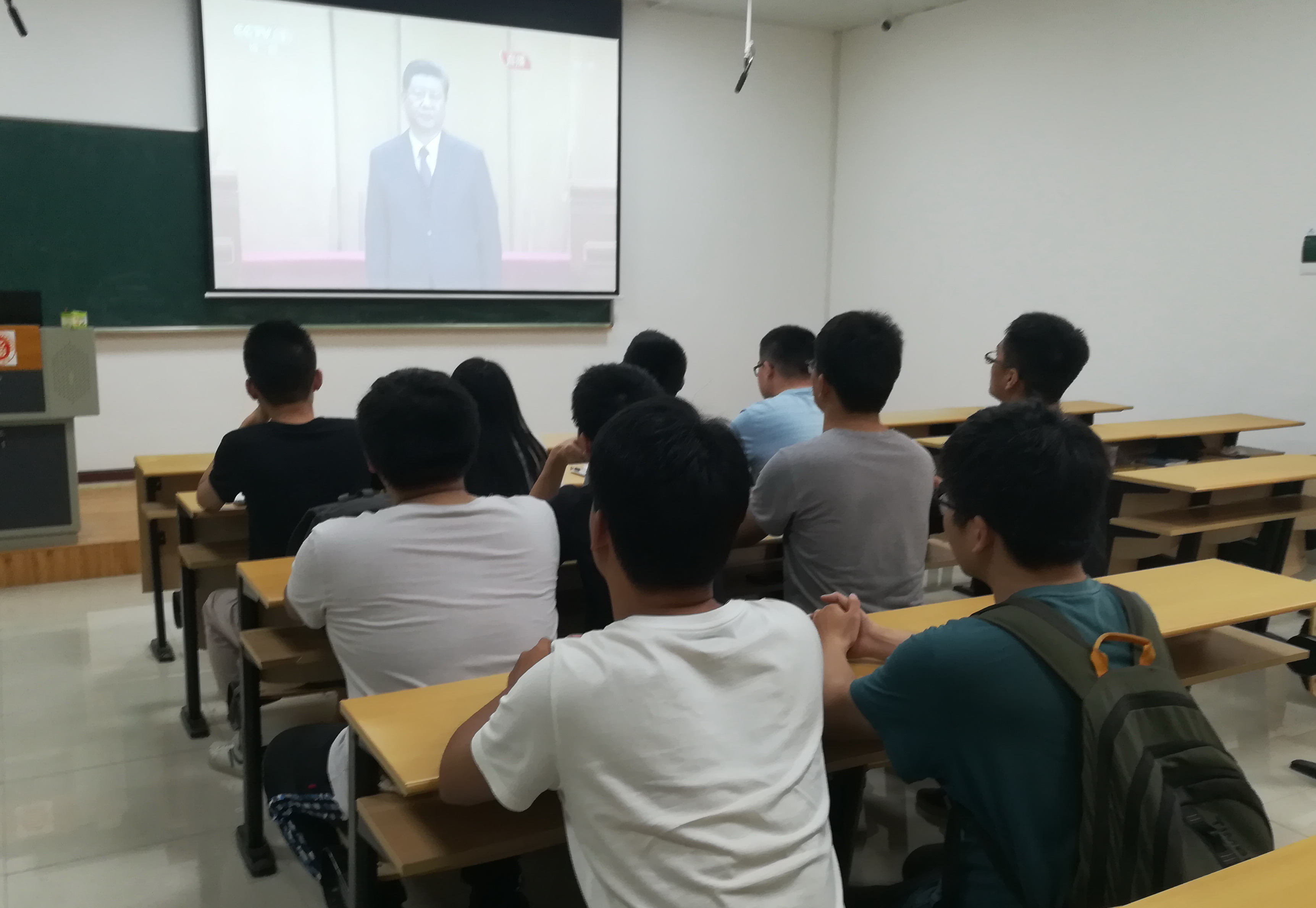 师生在机械北楼415共同收看“纪念五四运动100周年大会”
