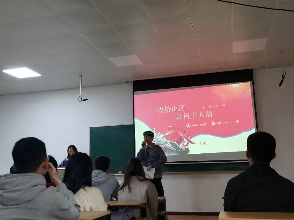 团委书记林成金老师,团委、学生会主要干部以及各年级团支部书记参与了此次活动。比赛中8名团支部书记结合自己的党史学习体会,从不同角度入手,带领我们体会了一个个可歌可泣的故事,让红色历史“活”起来,弘扬正能量、凝聚爱国心。