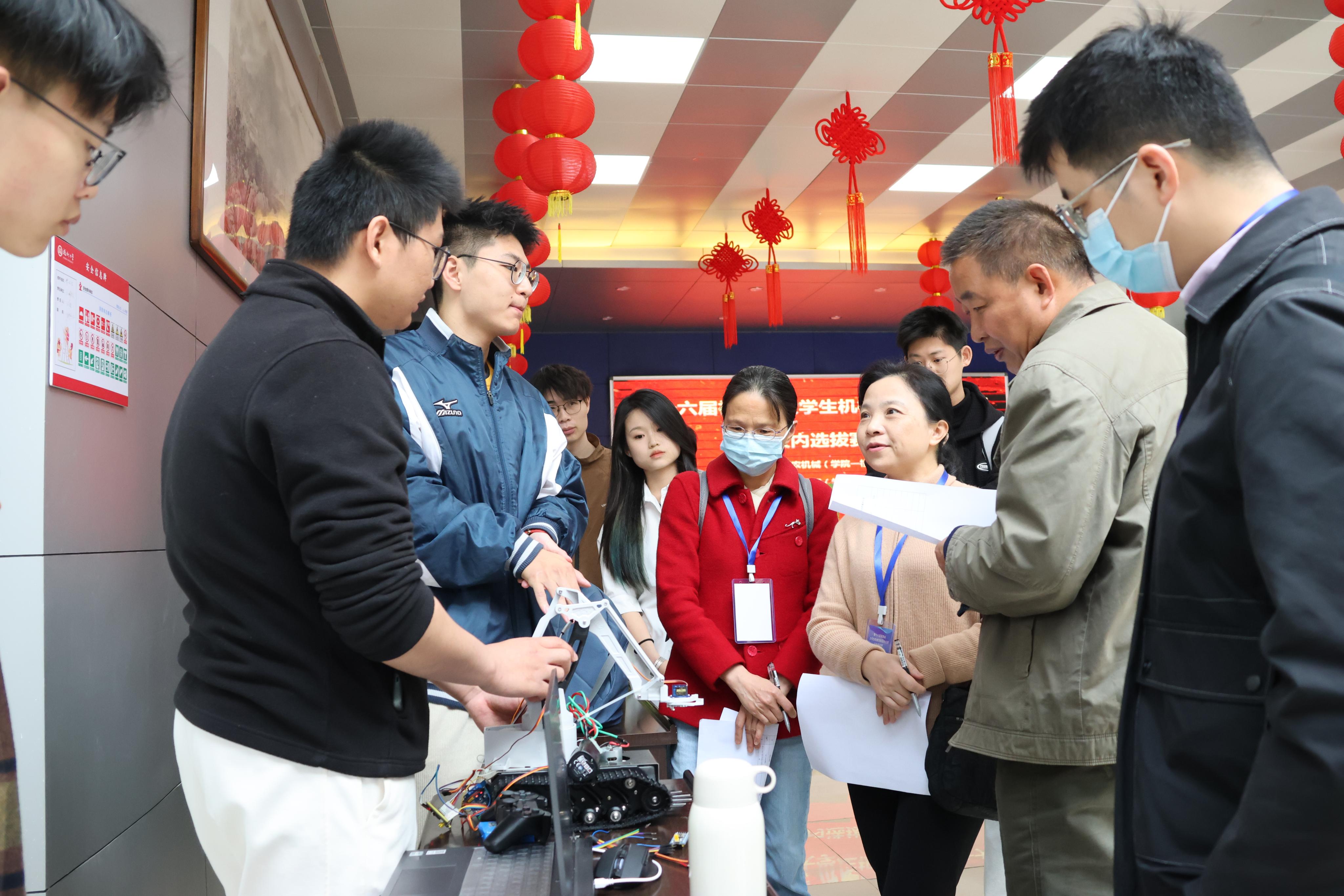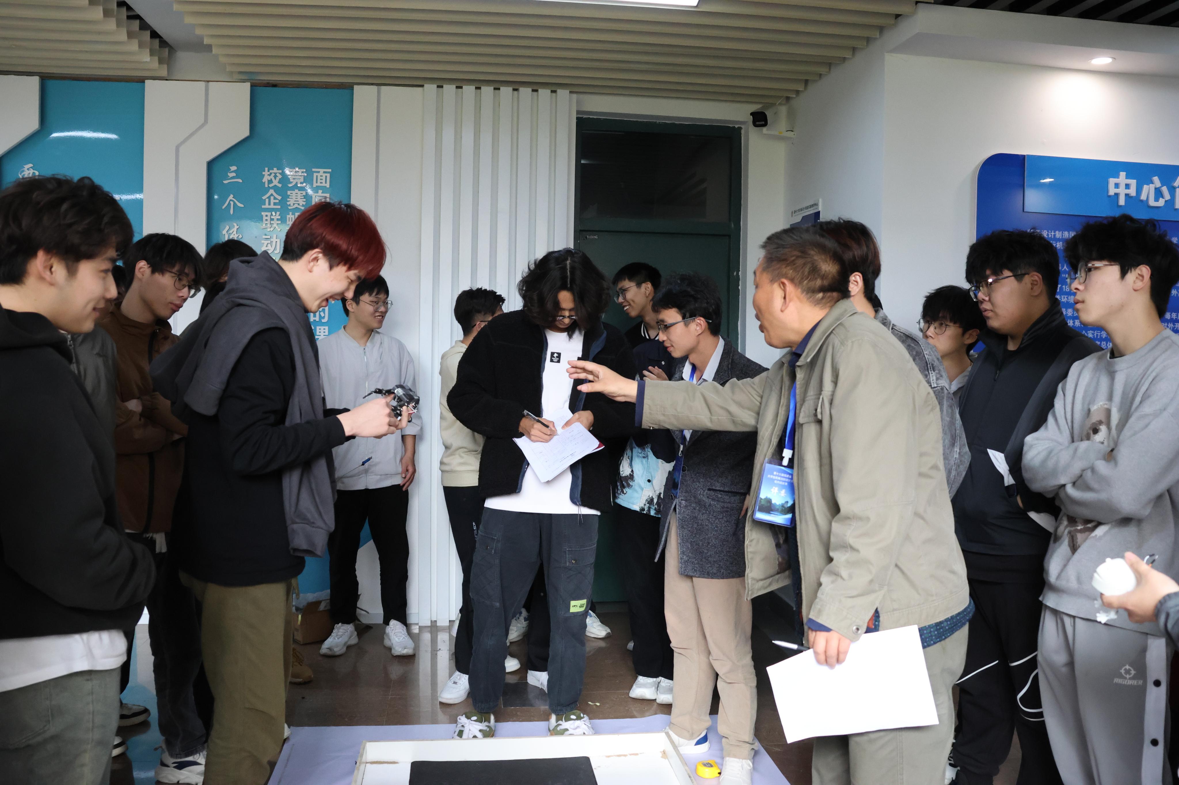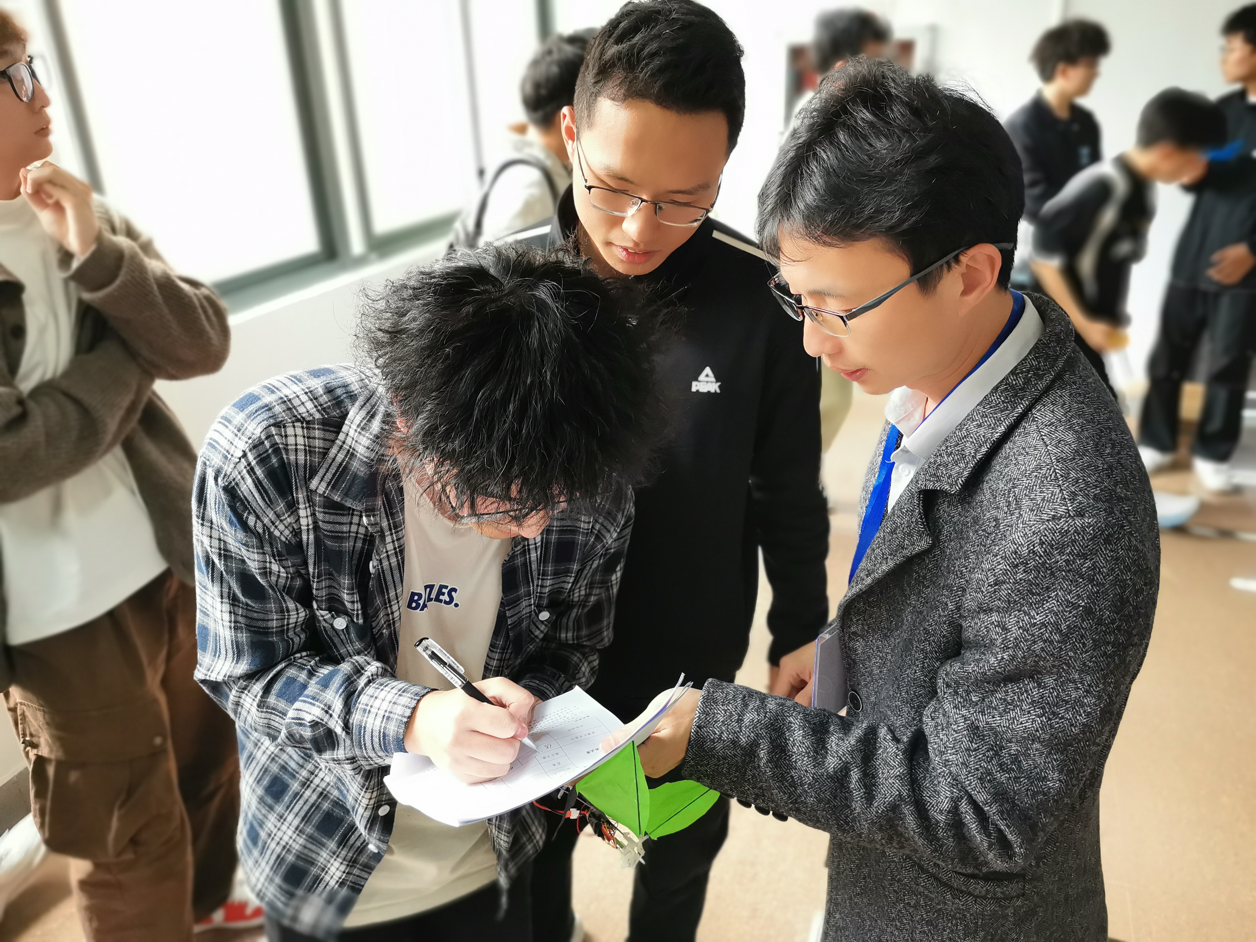 评委老师们在参赛同学展示结束后针对其作品结构、制作过程、改进设想等方面进行提问,表扬同学们新颖的设计和制作,并对不足处做出批评指正,争取在省赛中取得好成绩!
