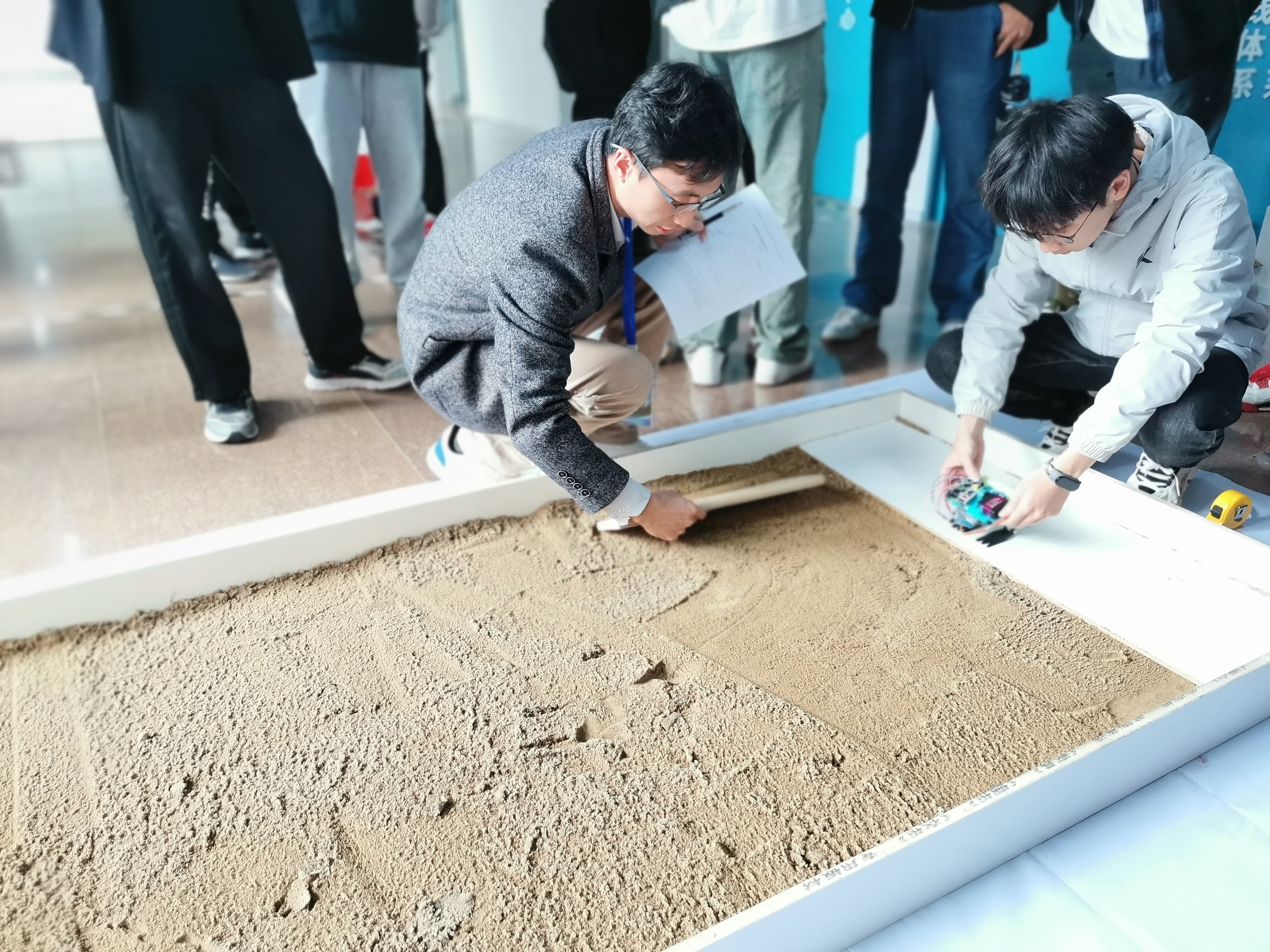 兴农机械赛道比赛在大象传媒 一楼大厅举办,共有八支队伍参赛。评委们依次查阅选手的机器并对其作出点评,对选手设计产品的创新点作出了肯定和赞扬。