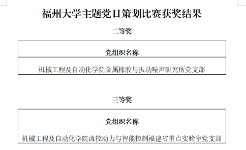金属橡胶与振动噪声研究所党支部《机械强国梦·青春筑国防》策划荣获二等奖,流控动力与智能控制福建省重点实验室党支部《山海同心·科教共进》策划荣获三等奖。